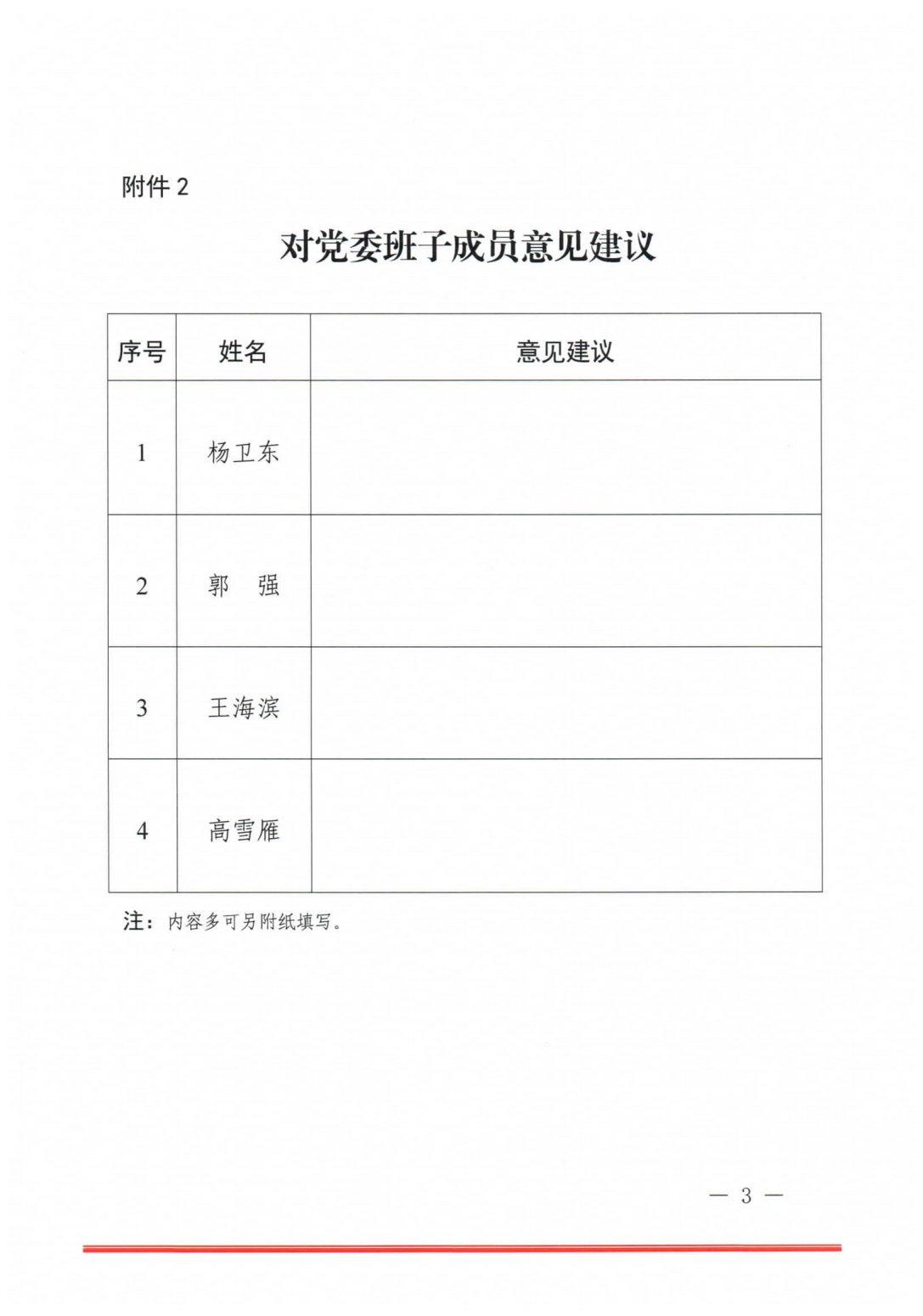 2.對(duì)黨委班子成員意見(jiàn)建議
