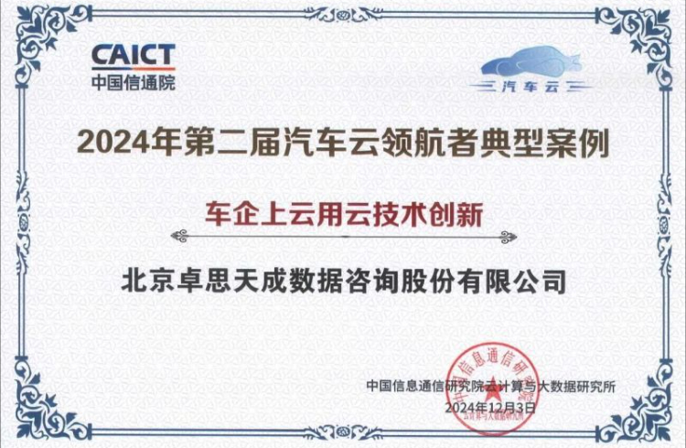 卓思“客戶體驗云平臺”斬獲中國信通院汽車云領(lǐng)航者典型案例