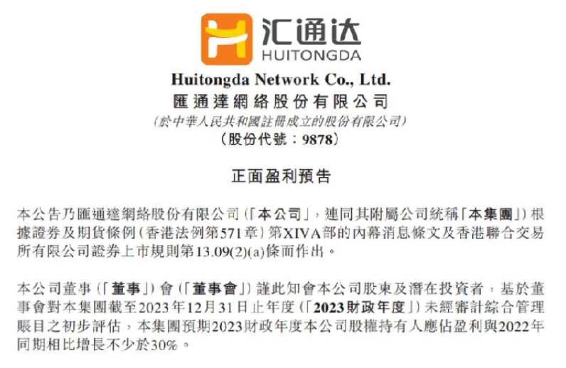 匯通達網(wǎng)絡(luò)(09878.HK)2023年盈利預(yù)喜 利潤同比增長或超30%