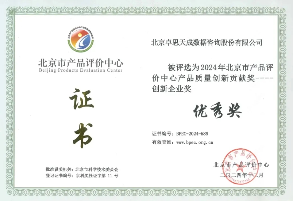 不僅如此,北京市科委、北京產(chǎn)品評(píng)價(jià)中心也于近日公示“2024年產(chǎn)品質(zhì)量創(chuàng)新貢獻(xiàn)獎(jiǎng)”終審名單,卓思憑借在客戶(hù)體驗(yàn)管理領(lǐng)域的卓越產(chǎn)品力和創(chuàng)新力,斬獲“2024年北京市產(chǎn)品評(píng)價(jià)中心產(chǎn)品質(zhì)量創(chuàng)新貢獻(xiàn)獎(jiǎng)——?jiǎng)?chuàng)新企業(yè)獎(jiǎng)”。