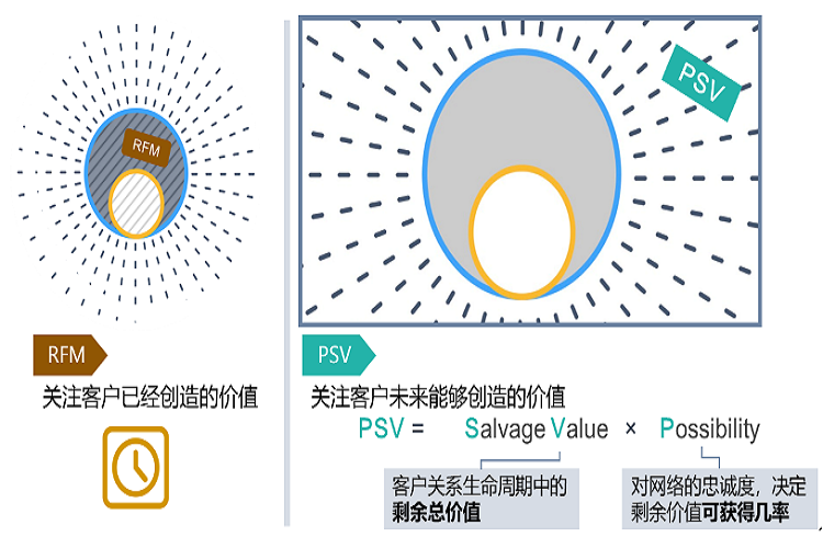 卓思創(chuàng)新的專利模型——PSV(剩余價(jià)值可得)模型,是對(duì)客戶價(jià)值進(jìn)行準(zhǔn)確評(píng)估的利器??蛻舻目偸S鄡r(jià)值,由常規(guī)的維修保養(yǎng)價(jià)值、衍生消費(fèi)價(jià)值和變異新生價(jià)值組成。只要掌握了平均的年均保養(yǎng)次數(shù)、維修次數(shù)、保險(xiǎn)、美容等發(fā)生次數(shù)以及新車用戶重購(gòu)的比例,就能計(jì)算出客戶的剩余總價(jià)值。當(dāng)我們準(zhǔn)確地評(píng)估了每一個(gè)客戶的價(jià)值之后,就可以實(shí)現(xiàn)把有限的資源優(yōu)先配置到剩余價(jià)值更高的客戶身上。
