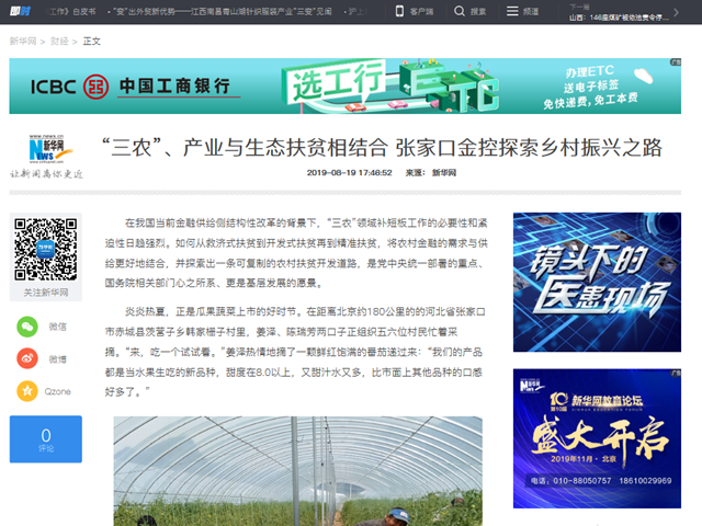 新華網(wǎng)丨“三農(nóng)”、產(chǎn)業(yè)與生態(tài)扶貧相結(jié)合 張家口金控探索鄉(xiāng)村振興之路