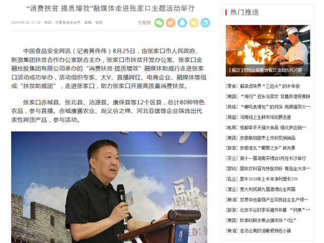 中國食品安全網(wǎng)丨“消費扶貧 提質(zhì)增效”融媒體走進張家口主題活動舉行