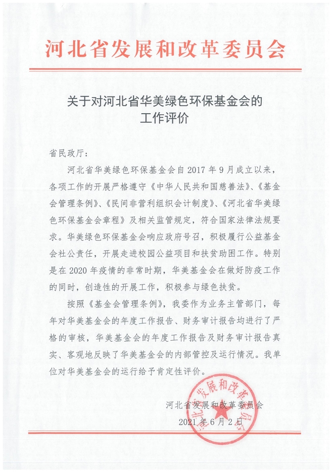 近日,張家口金融控股集團下屬公益組織——河北省華美綠色環(huán)?;饡ㄒ韵潞喎Q“華美基金會”)憑借良好的公益成果,受到河北省發(fā)展和改革委員會的充分肯定。