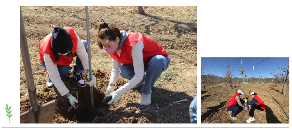 一片歡聲笑語中,伙伴們在專業(yè)人員的指導下,分組展開了植樹活動。大家干勁十足,揮鍬鏟土、挖坑栽樹、澆水培土,伙伴們配合默契,每一個環(huán)節(jié)都井然有序。